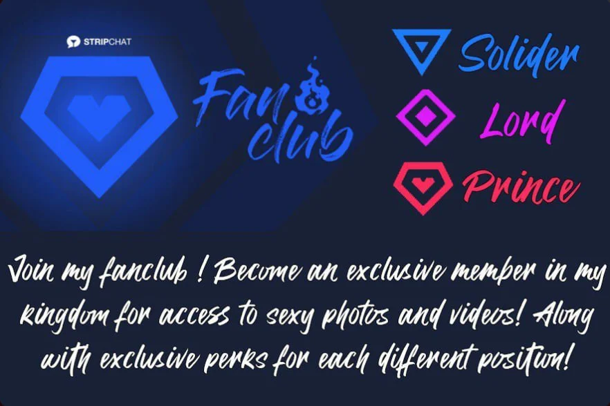 FAN CLUB EXCLUSIVE Soldier Lord Prince ♡ 100tk ♡ 200tk ♡ 500tk Benefits: ❤️ Support your model directly ❤️ Special status in the room ❤️ Unlock unlimited private chat